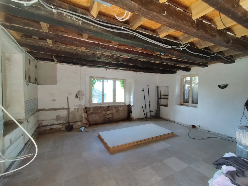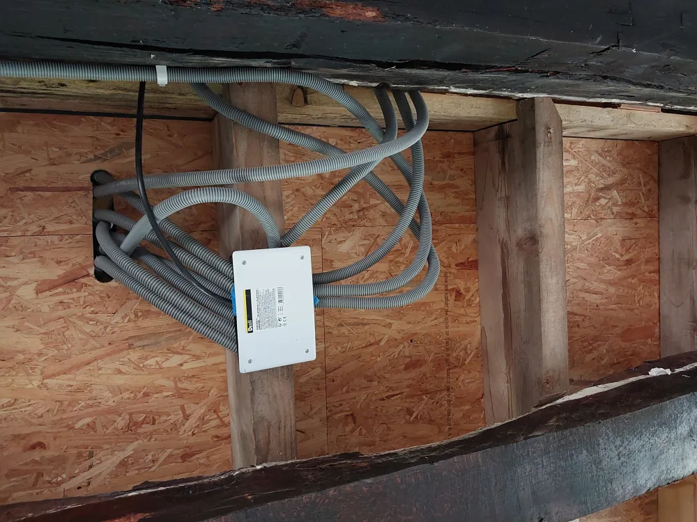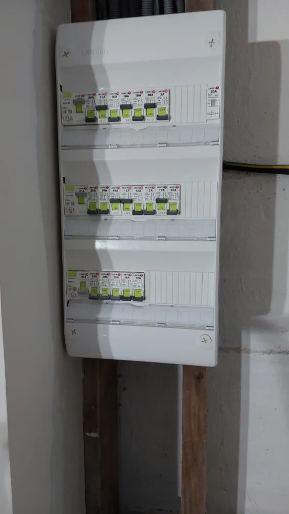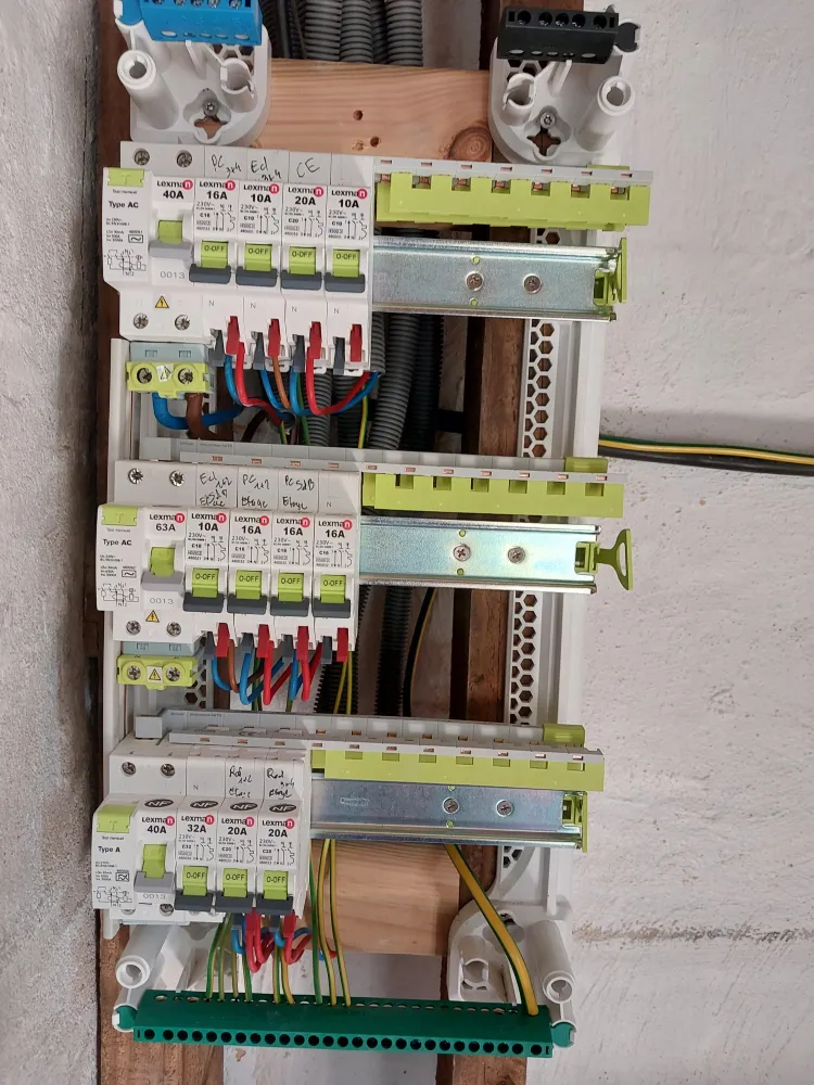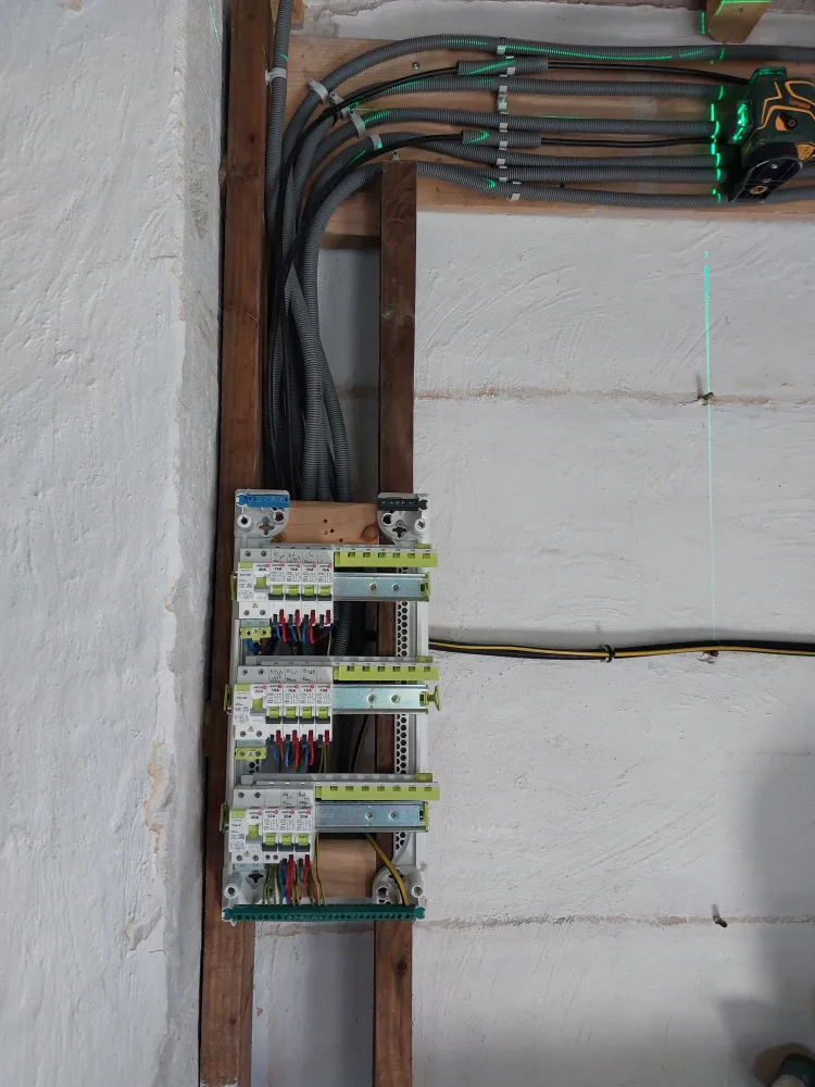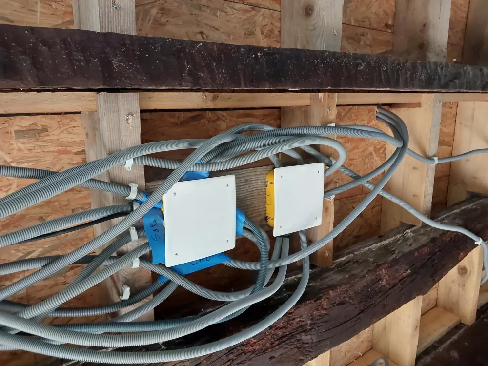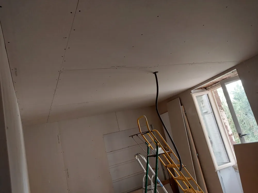 Nous avons réaliser la nouvelle installation électrique avec un tableau dédié à la dépendance. Ensuite nous avons créer un plafond suspendu pour le doublages des plafonds.